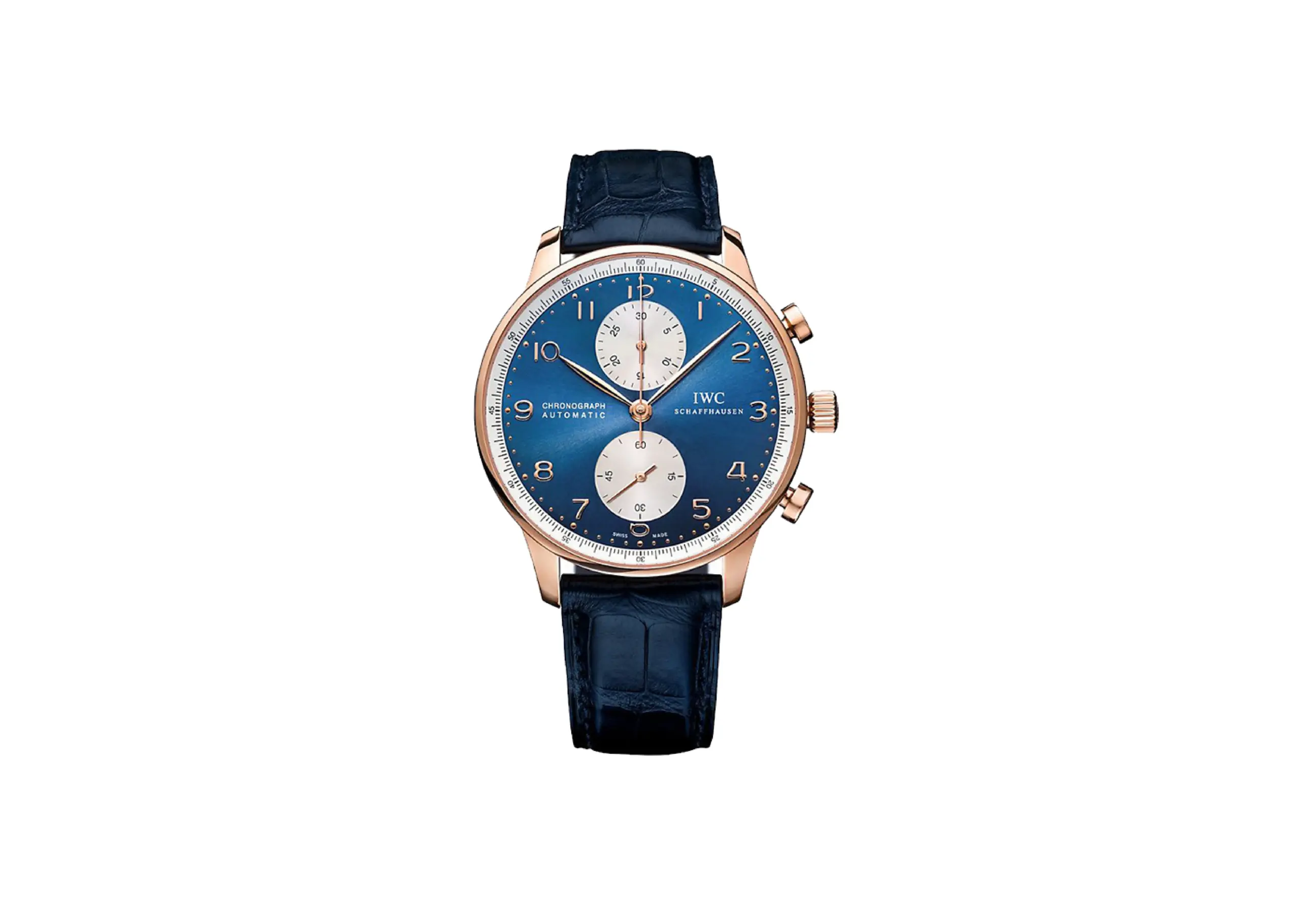 Diese Blau Herrenuhren haben eine Vielzahl von Farben und sind eine hervorragende Ergänzung zur Business-Kleidung. Der Durchmesser des Zifferblatts beträgt 41 Millimeter, die Farbe ist blau mit goldenen Rändern. Das Gehäuse besteht aus 18-karätigem Gold, das Armband aus echtem Leder und Kautschuk. Neben Stunden, Minuten und Chronographenfunktionen verfügt diese blaue Herrenuhr auch über einen kleinen Sekundenzeiger. Die Wasserdichtigkeit und Alltagstauglichkeit ist das entscheidende Merkmal dieser Uhr.