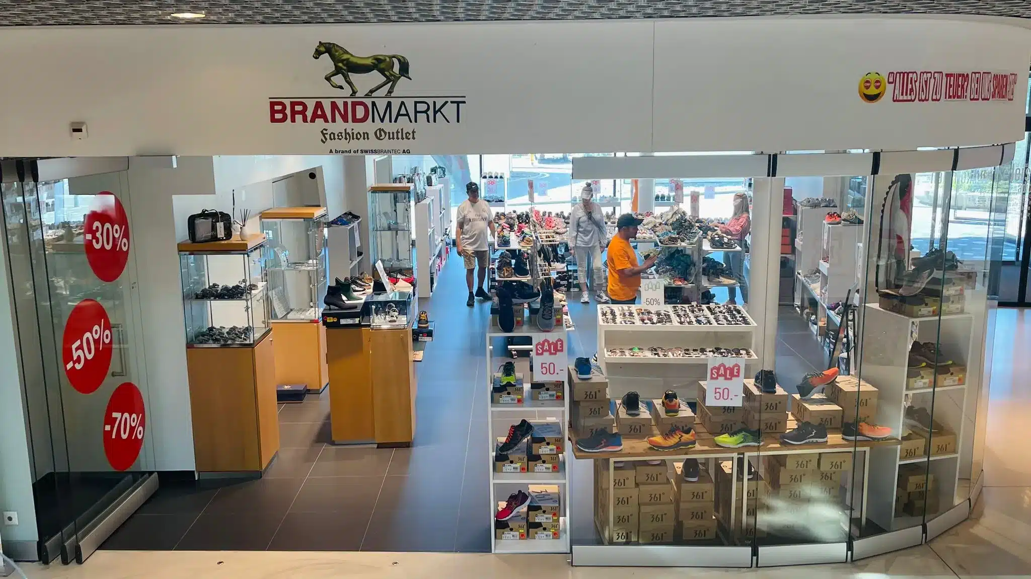 “Willkommen bei Brandmarkt – Ihrem Marken Outlet für originale Markenmode in Grüzepark Winterthur.”